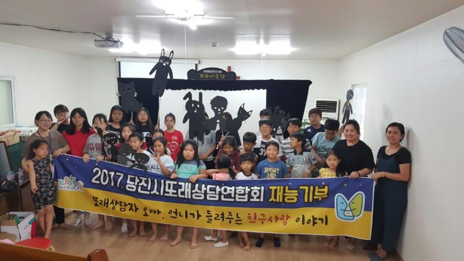 당진시청소년상담복지센터는(시 직영시설) 관내 청소년들의 재능기부 봉사활동을 주축으로 구성 된 동아리『친구사이(친구와 친구사이를 이어주는 좋은 친구)』가 송악지역아동센터에서 지난 8월 26일 재능기부활동을 통해 지역아동센터 아동들과 의미있는 시간을 만들었다.