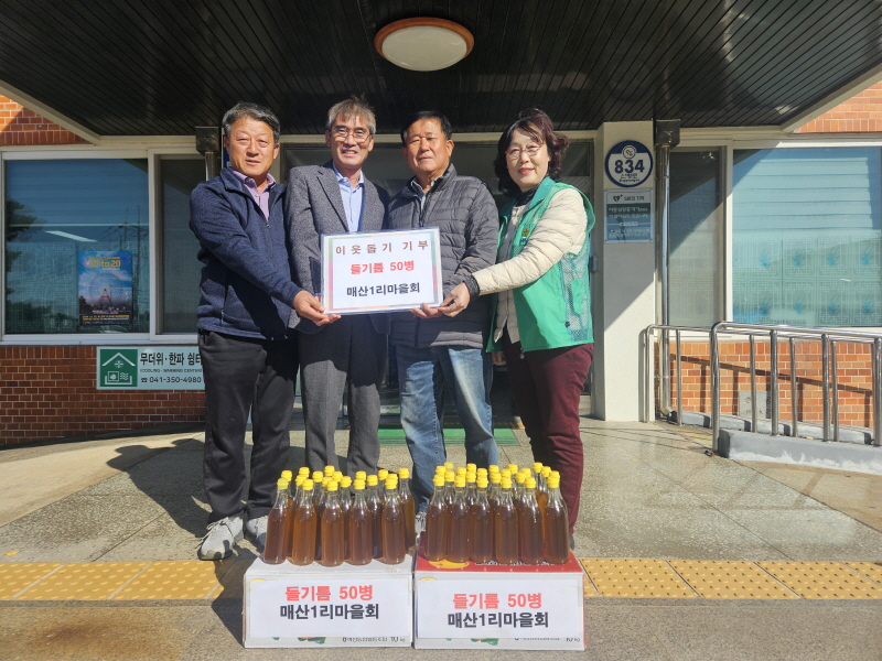 한편, 매산1리 마을회는 지난해에도 700평에 이르는 공동작업장에서 수확한 들깨로 들기름을 만들어 기부한 바 있다.