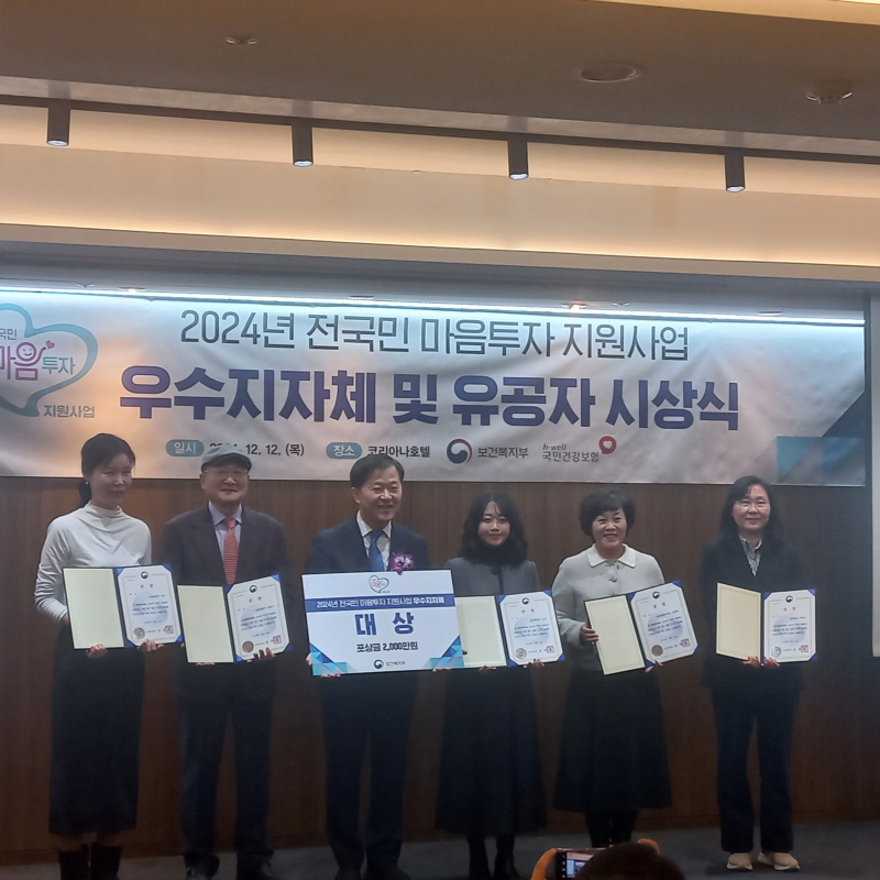 당진시(시장 오성환)는 보건복지부가 주관한 ‘전국민 마음투자 지원사업’우수 지자체 시상식에서 대상을 수상했다고 밝혔다.