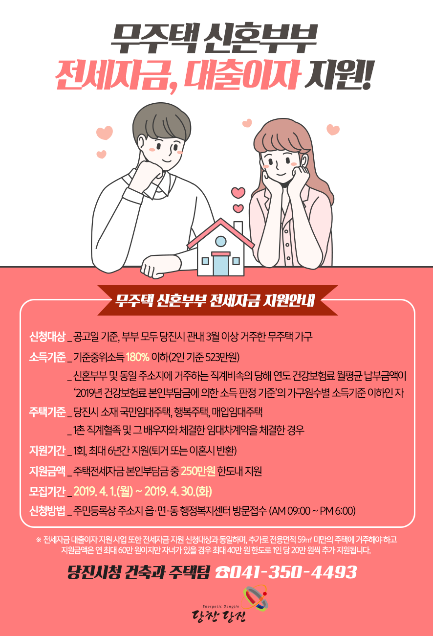 당진시, 신혼부부 전세자금과 대출이자 지원