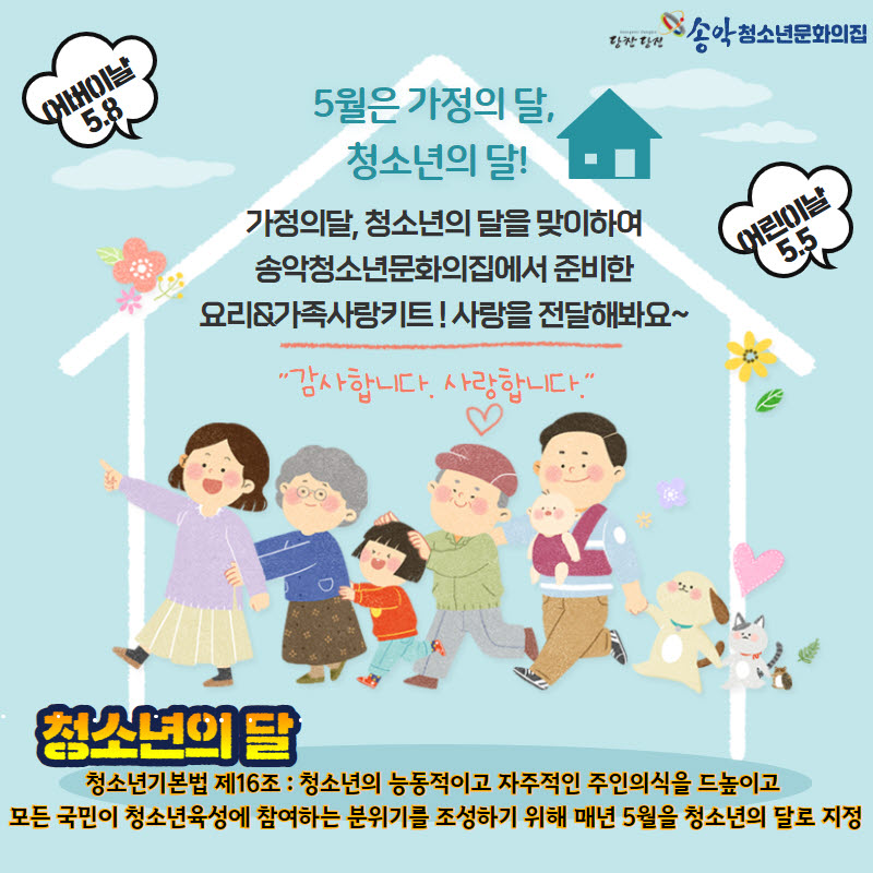 당진 송악청소년문화의집에서는 가정의 달 5월을 맞이해 코로나19 비대면 활동인 ‘5월은 가정의 달, 청소년의 달’ 프로그램을 진행한다고 밝혔다.