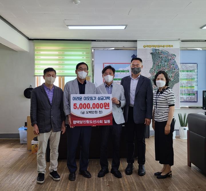 평택당진항도선사회(지회장 전복연)가 최근 송악읍행정복지센터(읍장 이운영)를 방문해 어려운 이웃을 위해 사용해 달라며 후원금 500만 원을 전달했다.