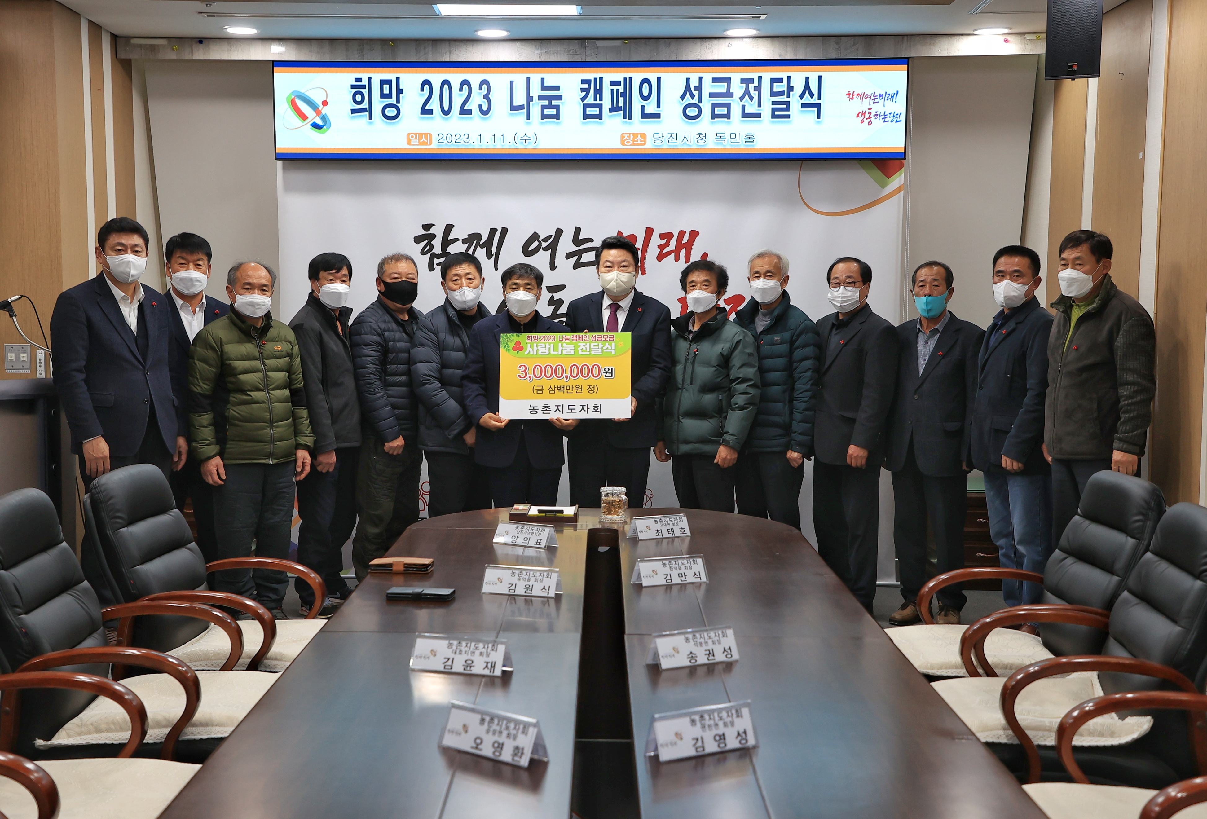 한국농촌지도자 당진시연합회가 11일 당진시청을 방문해 이웃돕기 성금 300만 원을 전달했다.