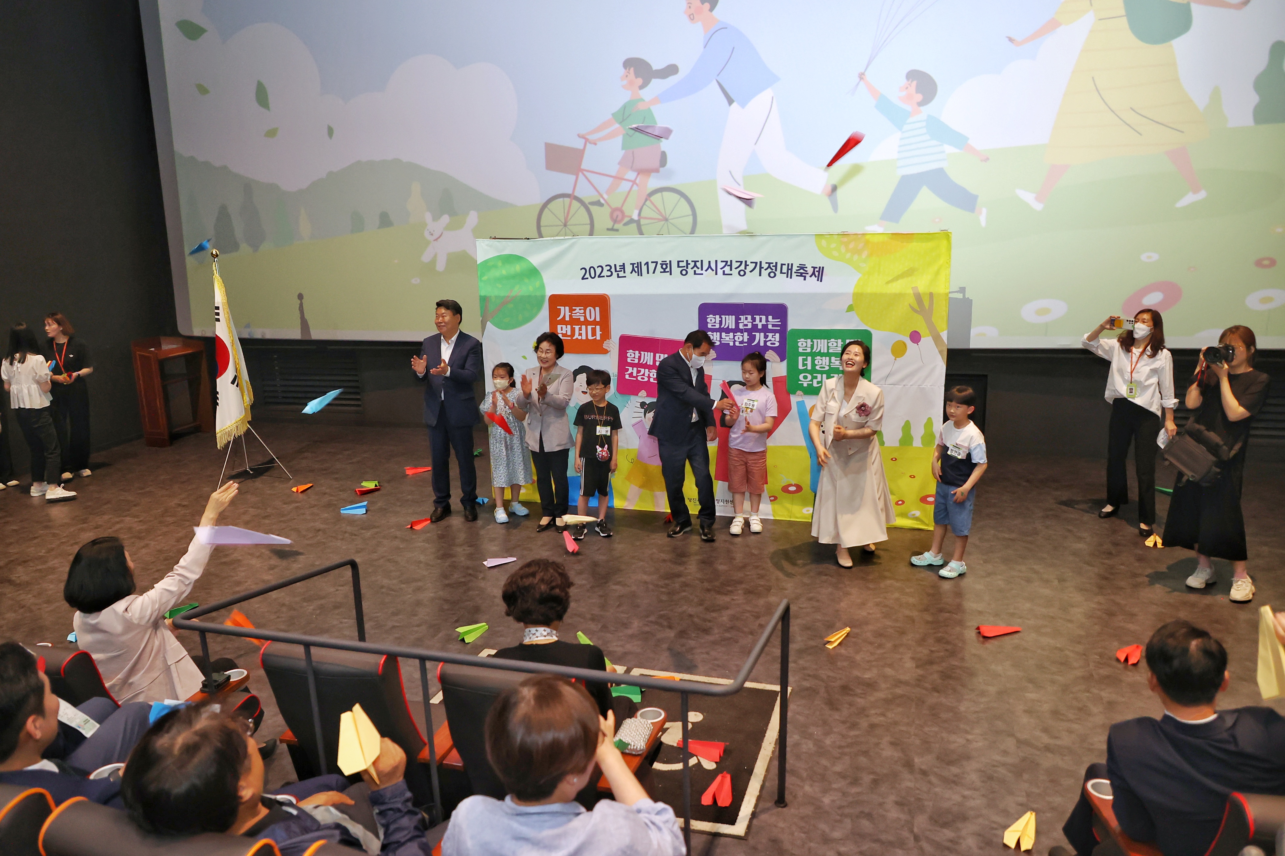이날 기념식에는 오성환 당진시장, 김덕주 당진시의회 의장 및 가족 단위 시민 등 600여 명이 참여한 가운데 내빈이 퍼즐을 한 조각씩 들고 구호를 외치는 퍼즐 퍼포먼스와 시민들이 함께 비행기를 날리는 비행기 퍼포먼스가 진행돼 건강한 가정을 위한 노력 의지를 다졌다.