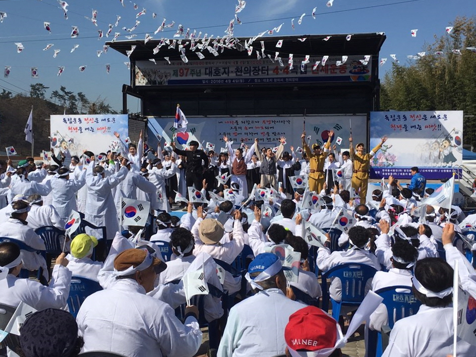 국내 3․1운동의 대표적 독립운동사 중 하나인 대호지․천의장터 4․4독립만세 운동은 지금으로부터 97년 전인 1919년 4월 4일 일본 제국주의에 맞서 대호지면사무소에서 시작해 정미면 천의장터까지 이어졌던 독립만세운동으로, 당진에서는 순국선열들의 고귀한 희생정신을 이어가고자 1989년부터 기념행사가 열리고 있다.
