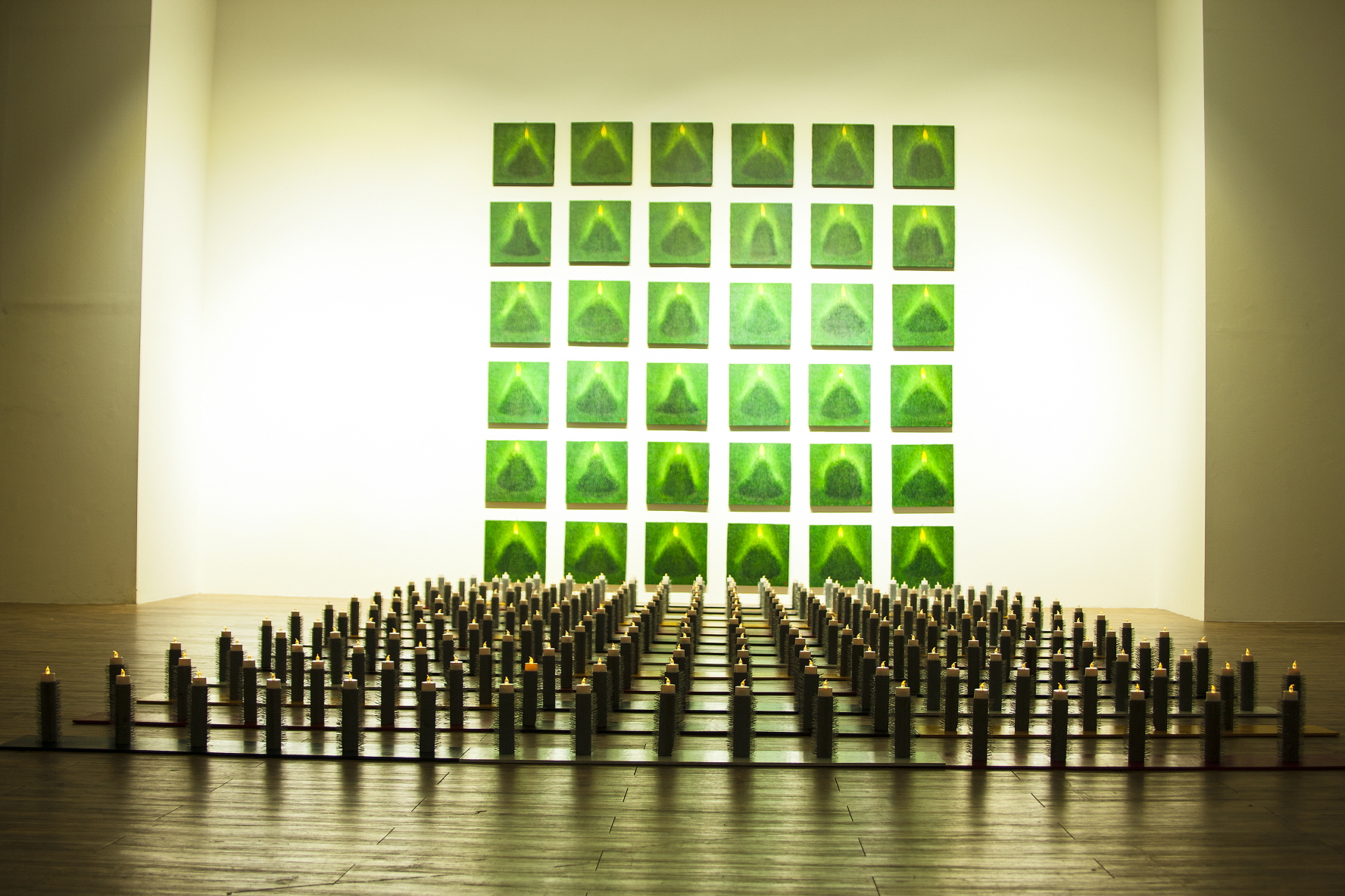 또한 빛에 반사되는 스테인리스의 가느다란 철심을 프라스틱 기둥에 박아 완성한 인공 풀Steel Grass 시리즈 작품과 철심 박힌 기성품 의자 등 설치작품 8점과 36개의 평면작품 위에 촛불을 표현해 전통의 오방색(五方色, 황, 백, 적, 청, 흑)으로 바닥을 만들어 그 위에 365개의 촛대를 설치한 작품 등 평면과 설치작품 23점을 만나볼 수 있다.
