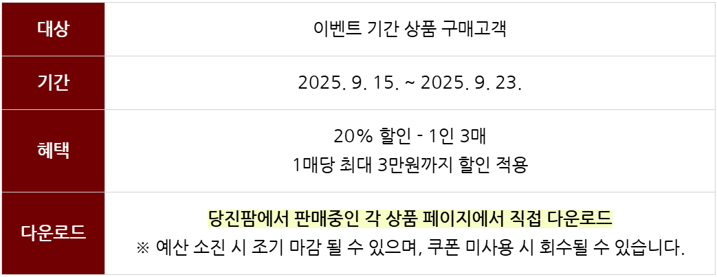 당진팜 추석맞이 이벤트 20% 할인 안내