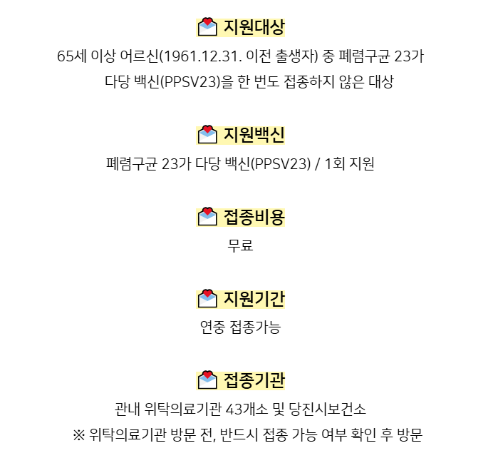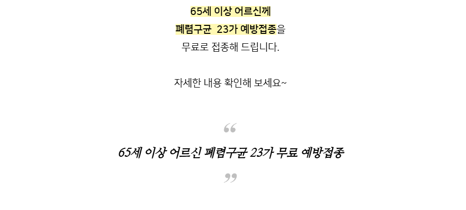 65세 이상 어르신 폐렴구균 23가 무료 예방접종
