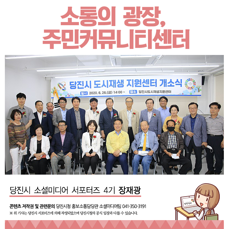 그다음 주인 30일에는 당진시 마을 만들기 지원센터가 뒤 이어 개소식을 가졌습니다.