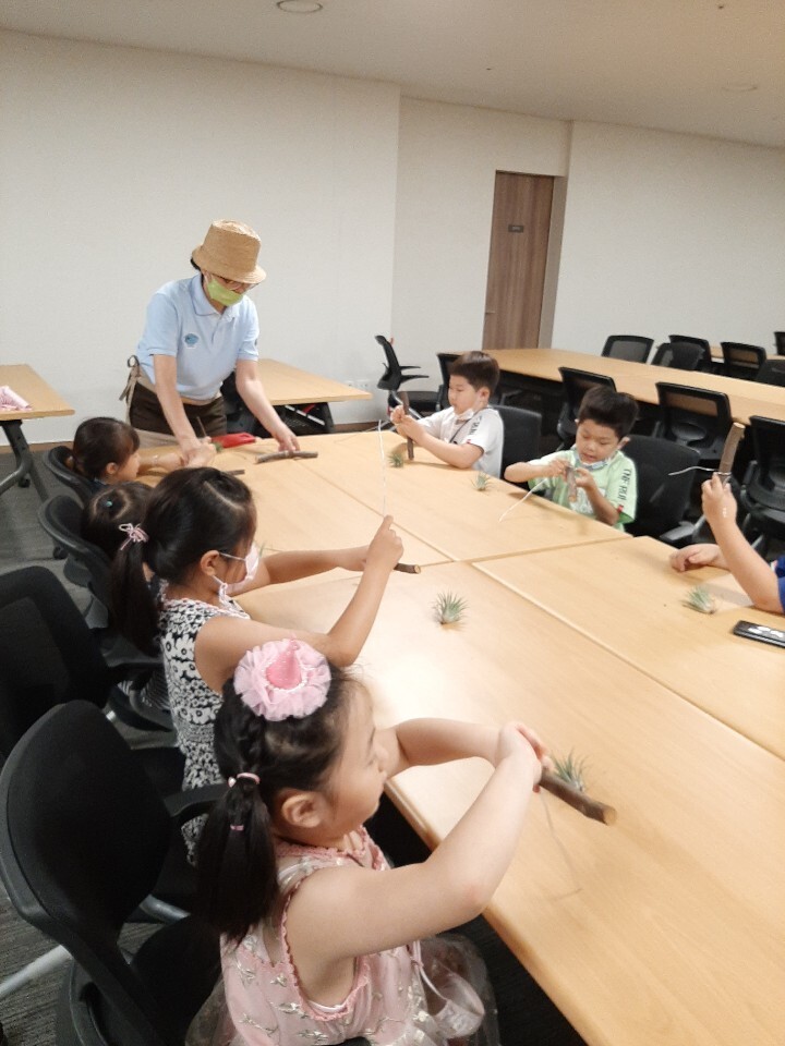 그림책 읽기를 마치고 미술활동과 연계한 공중 식물 '이오 난사'로 나만의 공중정원을 만들었습니다.