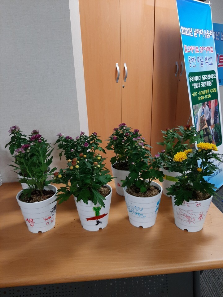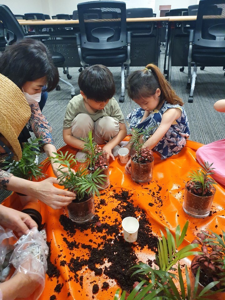 반려 식물 이름도 지어주고 화분에 그림도 그리며 식물심기를 하는 동안 생명을 키워내는 흙의 부드러움과 생명력을 경험하였습니다.