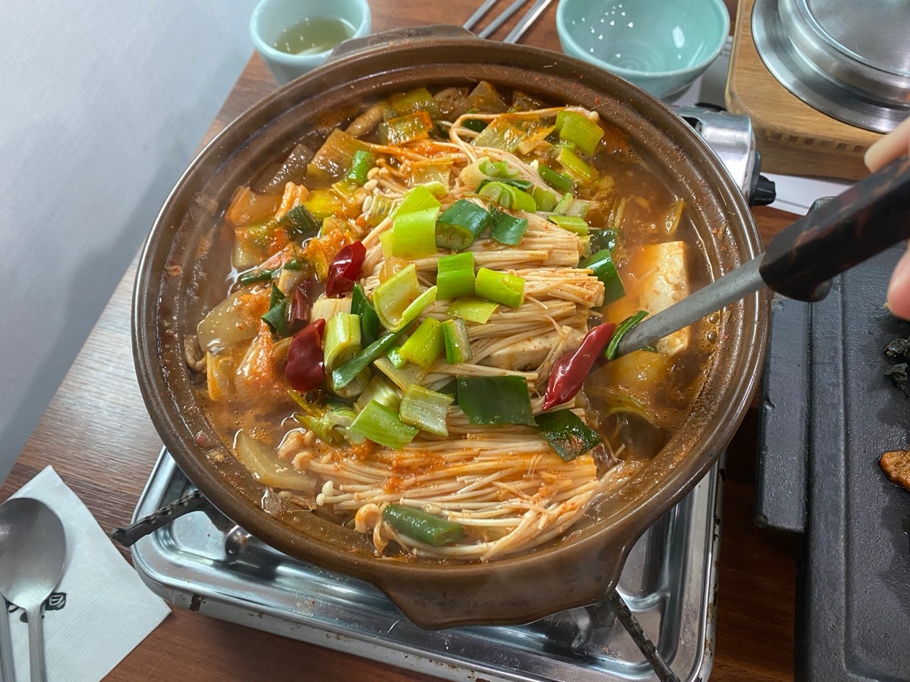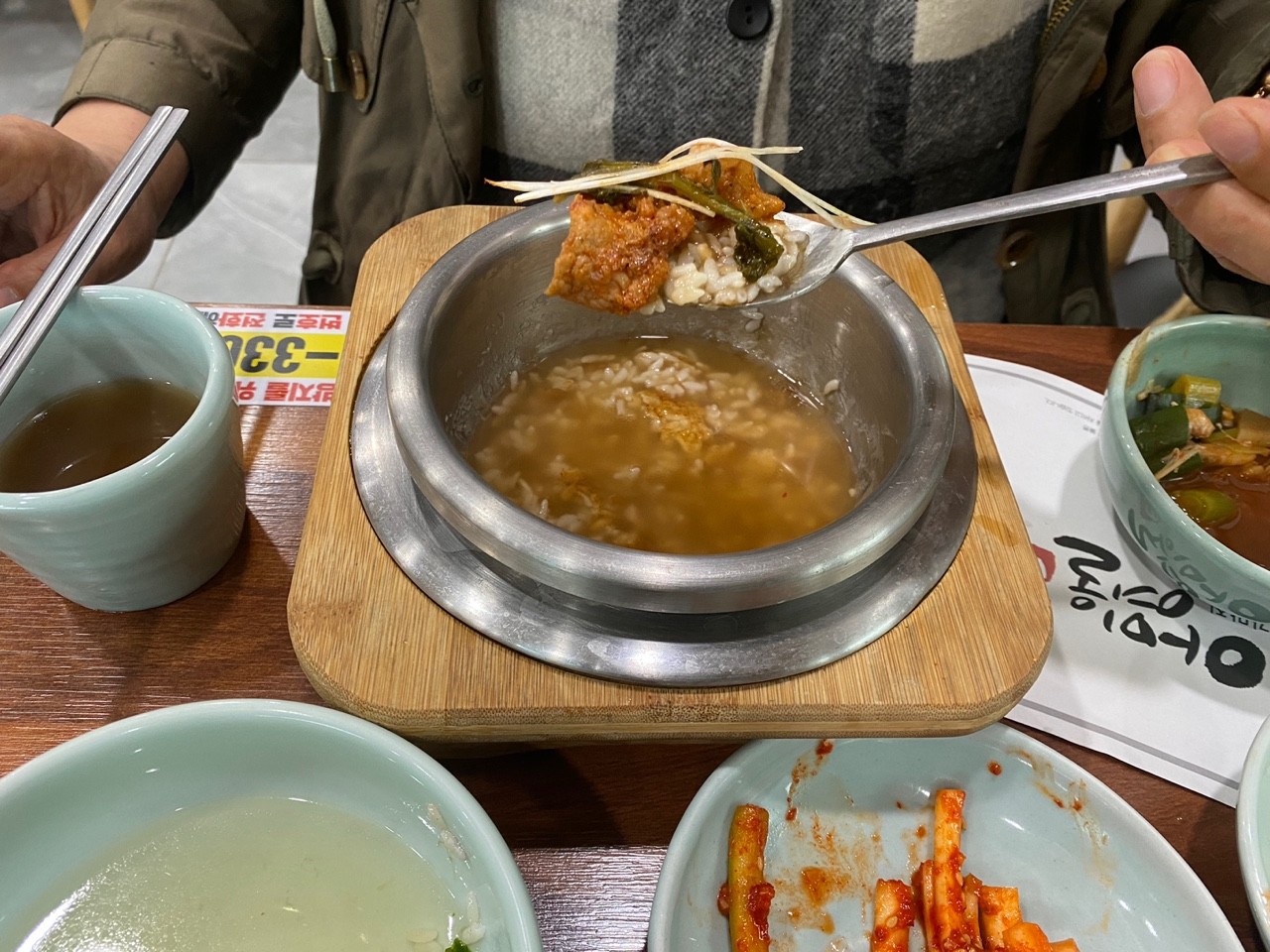 눌은밥이 불기를 기다리며 행복한 식사를 시작합니다.