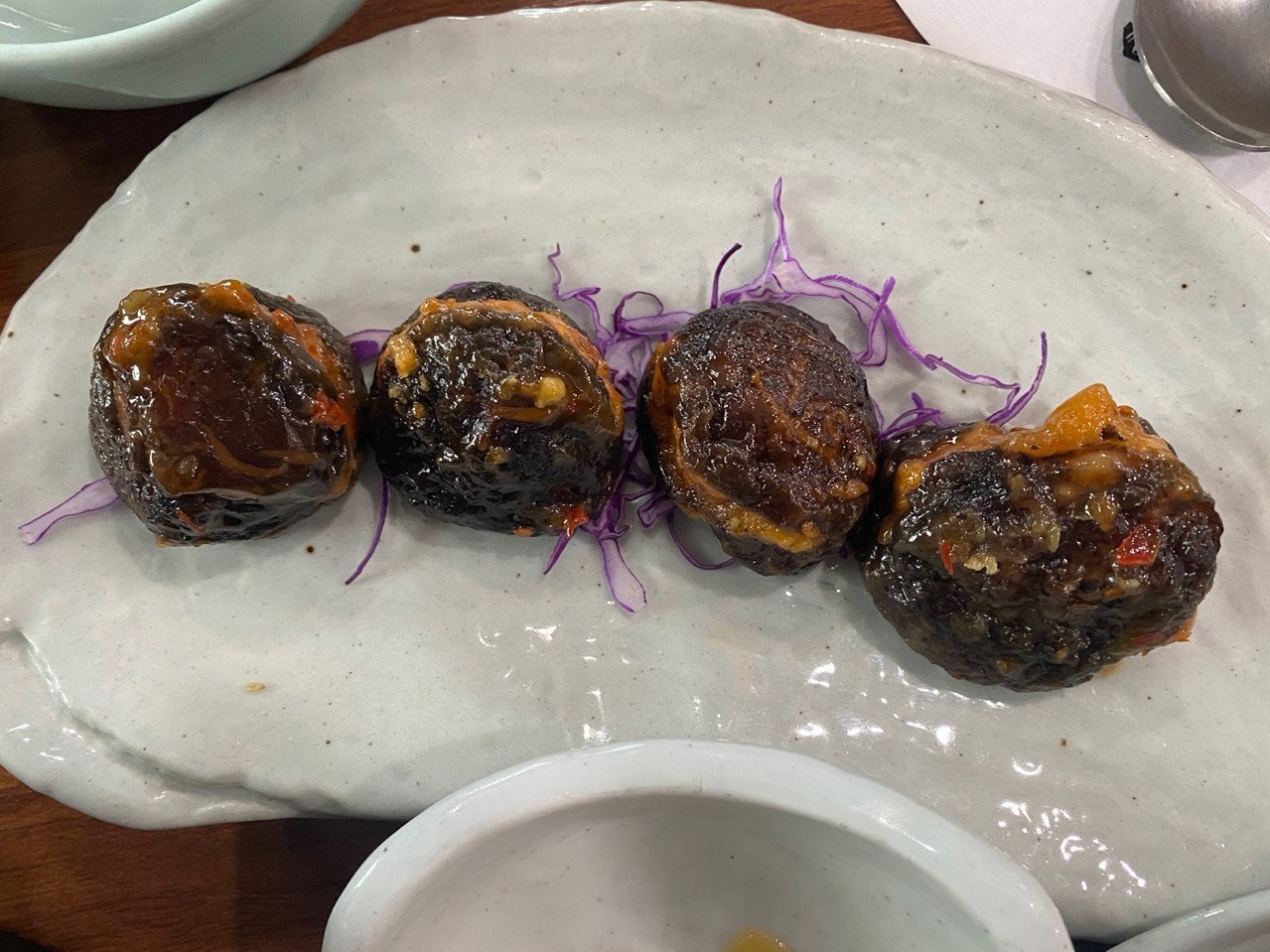 꺼먹지의 단백한 맛과 맥적의 고소함에 대파향이 어우러져 자꾸만 손이 가는 맛이네요.