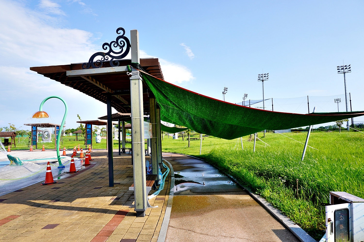 싱그러운 풍경 끝으로 야외 물놀이장이 있습니다.