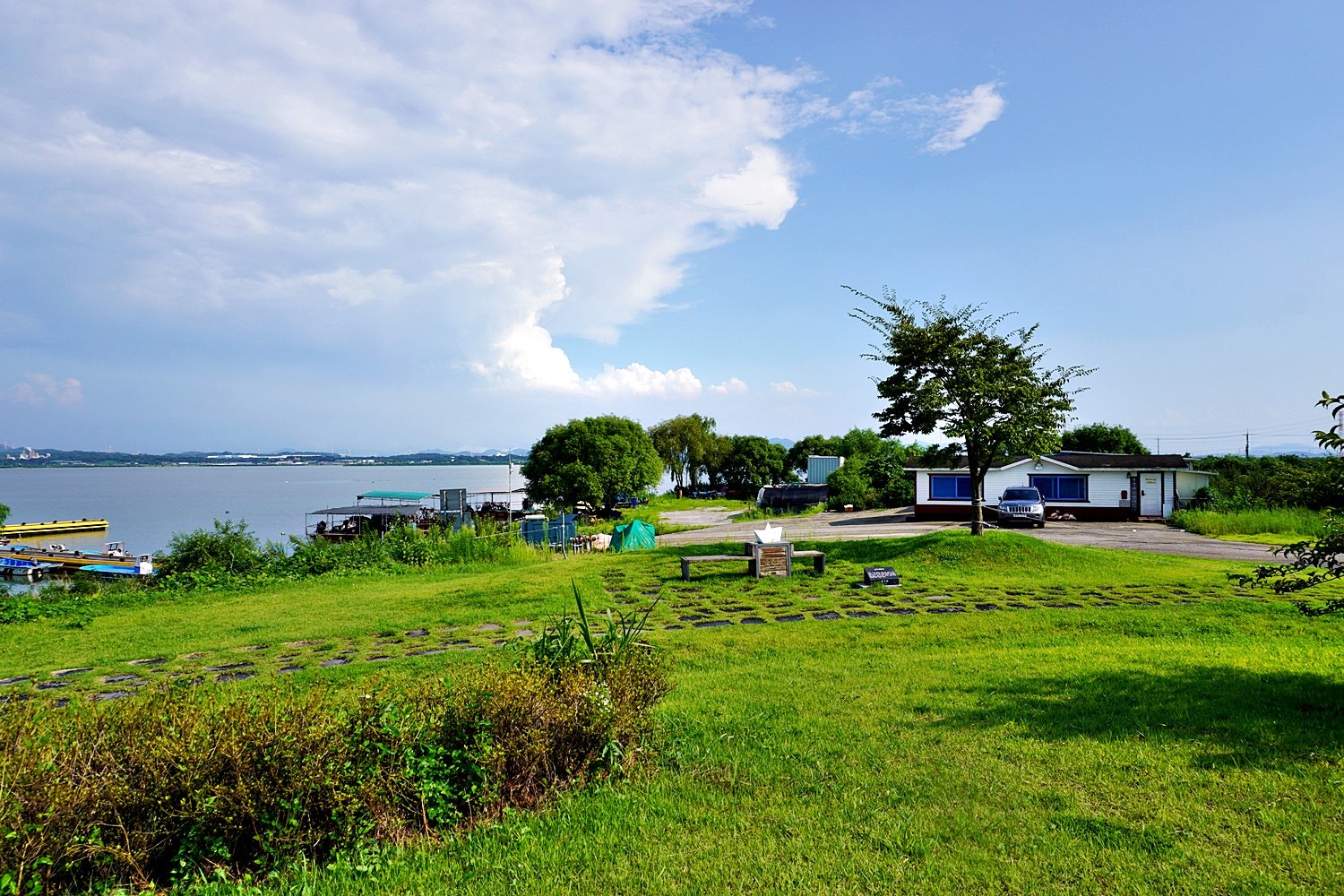 초록 물결이 있는 여름 풍경, 삽교호 호수 공원