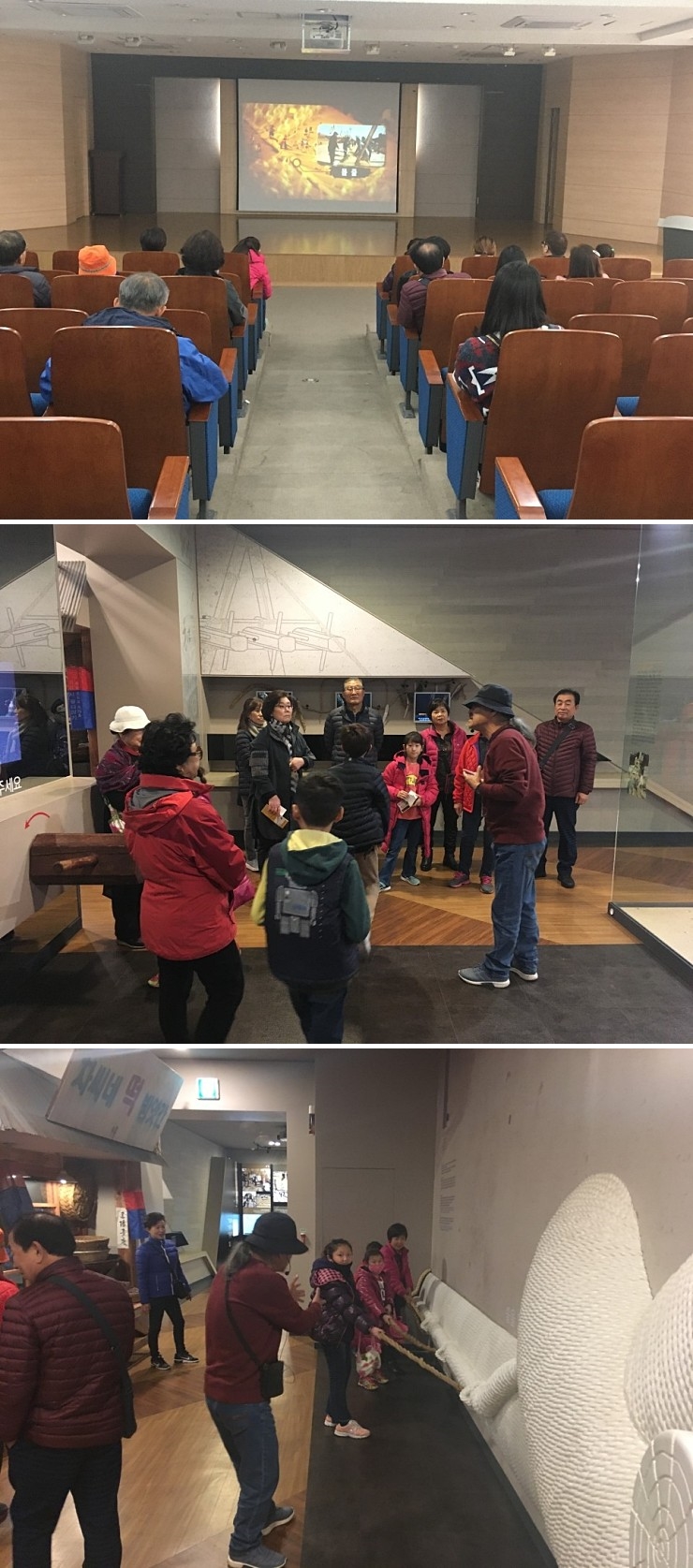 첫 번째 탐방지는 기지시줄다리기박물관이었습니다. 1982년 국가지정 무형문화재 제75호로 지정된 기지시줄다리기는 500여년의 역사를 갖고 있는 당진의 대표 민속문화 중 하나입니다. 2015년에는 이러한 역사적 가치를 인정받아 유네스코 인류무형문화유산에 등재되기도 하였죠. 이날 탐방에 참석한 분들도 기지시줄다리기에 대해서는 어느 정도 익히 알고 계셨는데요, 기지시줄다리기 및 유네스코 등재와 관련된 영상물을 보며 보다 자세히 파악해볼 수 있었습니다. 2층 박물관에서는 당진시문화관광해설사님의 해설로 보다 친근하게 역사와 유래에 대해 이야기를 들을 수 있었습니다.