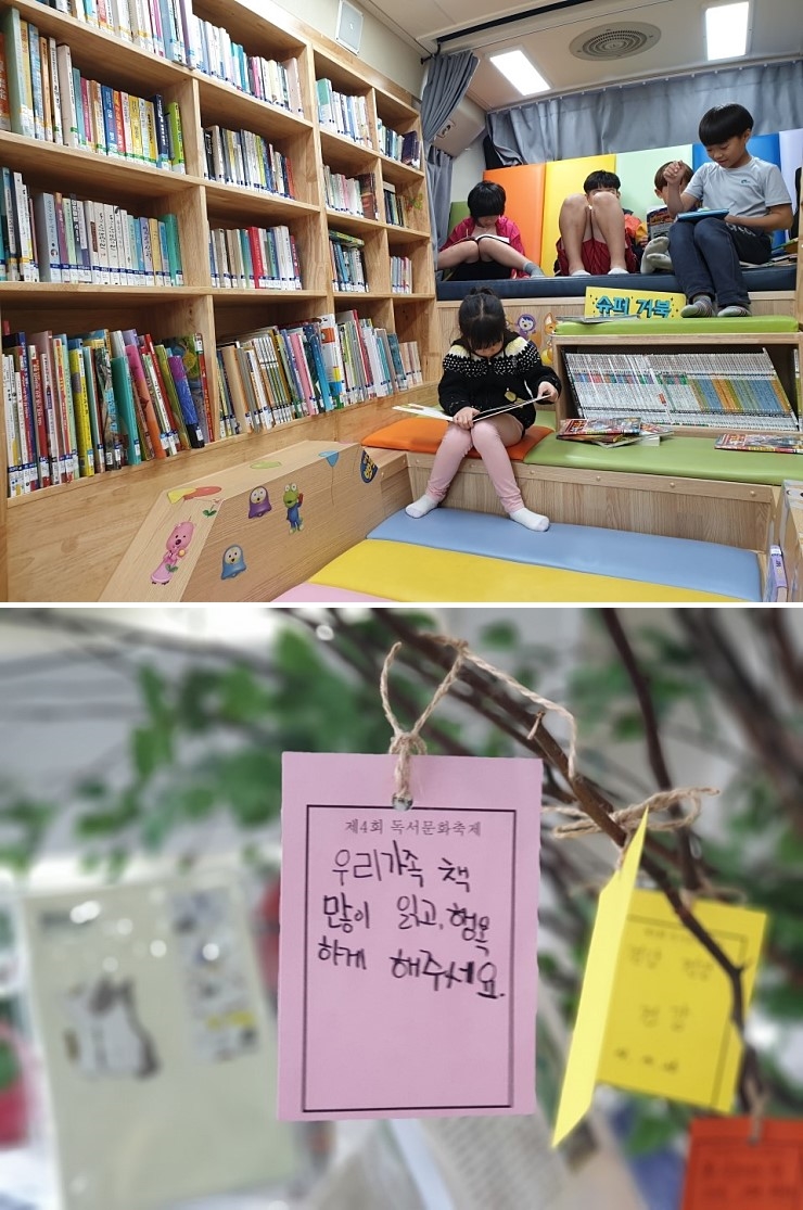 이외에도 성장 마당에서는 우리 동네 서점을 만나보기도 하고, 해오름 갤러리에서는 책과 함께 하는 사진전을 관람해 보기도 합니다. 여기저기 돌아다니느라 지칠 즈음에는 책 버스에서 조용히 책 읽는 시간을 가져 보기도 합니다.