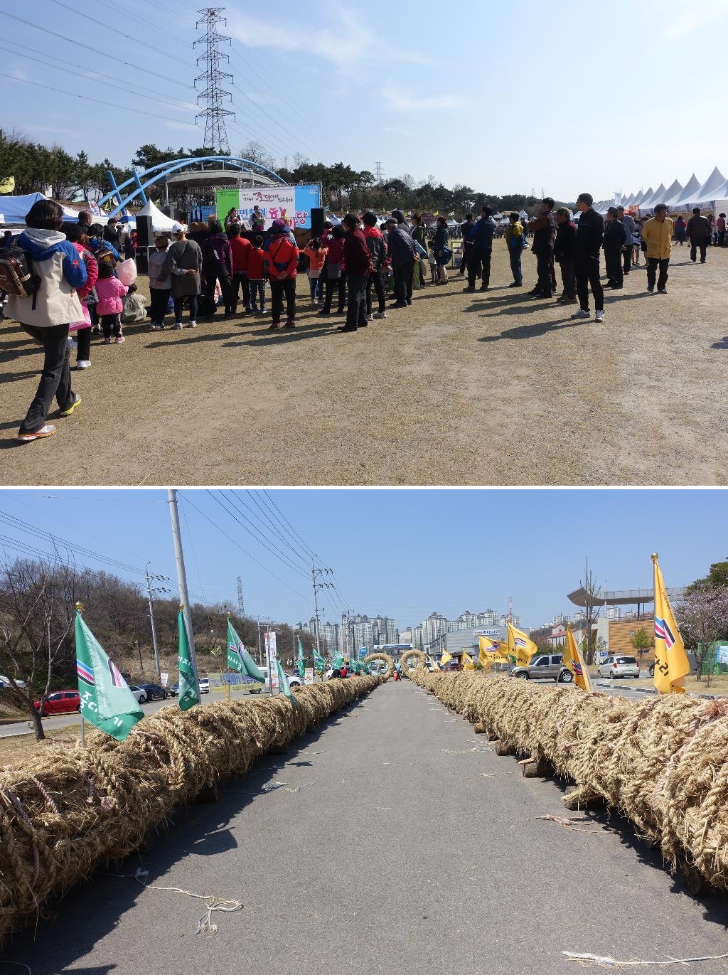 전시해 놓은 굵은 줄입니다. 입이 떡 벌어지게 하는 굵은 줄에 놀라움과 감탄사가 절로 나옵니다. 이렇게 큰 줄은 처음 봤고, 한번 줄다리기도 안 보면 서운할 것 같은 굵은 줄입니다.