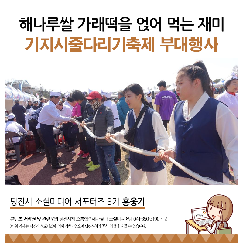500년 전통의 충남 당진 기지시줄다리기 민속축제가 4월 11일부터 14일까지 기지시 줄다리기박물관 일원에서 기지시줄다리기 축제위원회 주최로 개최했습니다.