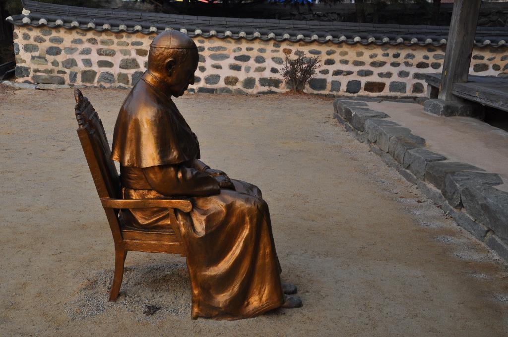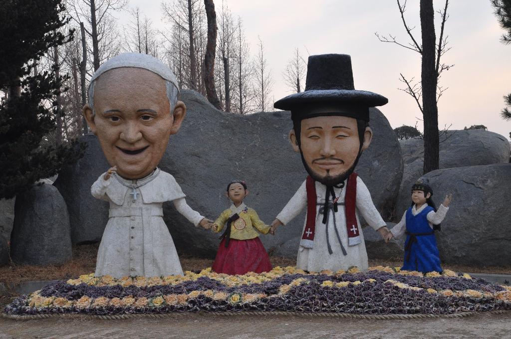 솔뫼성지 입구의 조형물이 아름답게 다가옵니다. 교황이 이곳을 찾게 되어 많은 변화를 가져온 것 같습니다. 입구 왼쪽에 넓은 야외 공연장이 새로 건축되었습니다. 이곳은 끊임없이 천주교 순례자들이 찾는 곳이고 여행자들도 찾아서 김대건 신부를 생각해 보는 곳입니다.