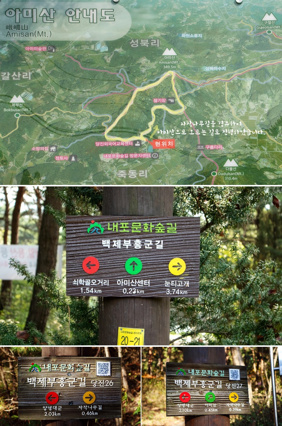 또한 아미산 초입의 임도는 조금 가파르니 무리하지 않고 여유롭게 걸으시면 좋을 것 같습니다.