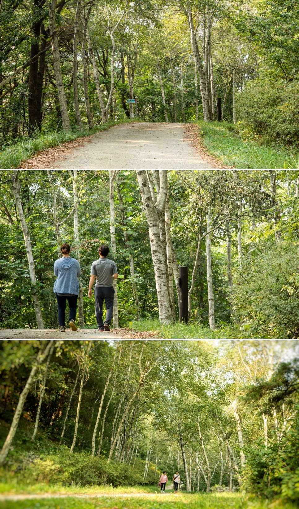 흙과 자갈이 깔린 길에서 시멘트 포장 도로로 이어지는 길에 자작나무들이 모습을 드러냅니다. 자작나무는 마르나 젖으나 불에 탈 때 자작자작 소리를 내며 탄다고 해요. 자작나무 길을 걸으면 은은한 박하향도 맡을 수 있다고 하는데요, 그래서인지 괜히 큼큼 냄새를 맡아보게 되네요~
