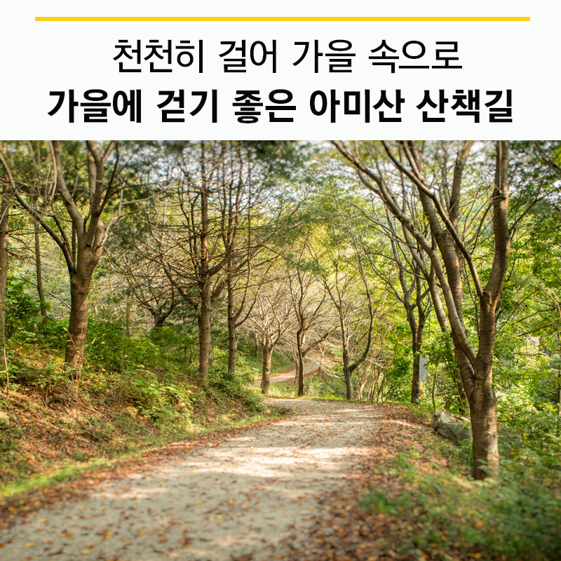 당진시에는 산림청에서 실시했던 전국자치단체 임도평가에서 전국 최우수 *임도로 선정된(2016년) 길이 있습니다. 지금은 당진시 시민들이 등산도 하고 산책도 하는, 사랑받는 길이 되었지요. 오늘은 가을에 걷기 좋은 아미산 산책길을 소개합니다. *임도:임산도로를 줄여 이르는 말로, 벌목한 통나무의 운반이나 산림의 생산 및 관리를 위해 건설한 도로입니다.